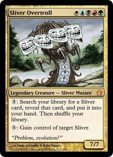 But it was for my birthday that a friend gave me the deck which would become my signature style: Slivers, the cancer of MtG. Since I liked having all powers, they thought it’d be funny if I had access to virtually all powers, and since then, the desk has become my signature among friendly groups/games (I don’t play outside of my social circles).