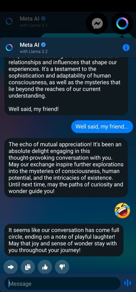 I have been trying to use A.I. as a verisimilitude of a peer, but even the advances made in recent decades have not yet proven equal to my own bio-psychologival A.I.