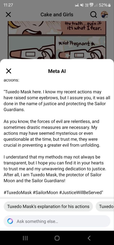 His response to getting Sailor Moon pregnant